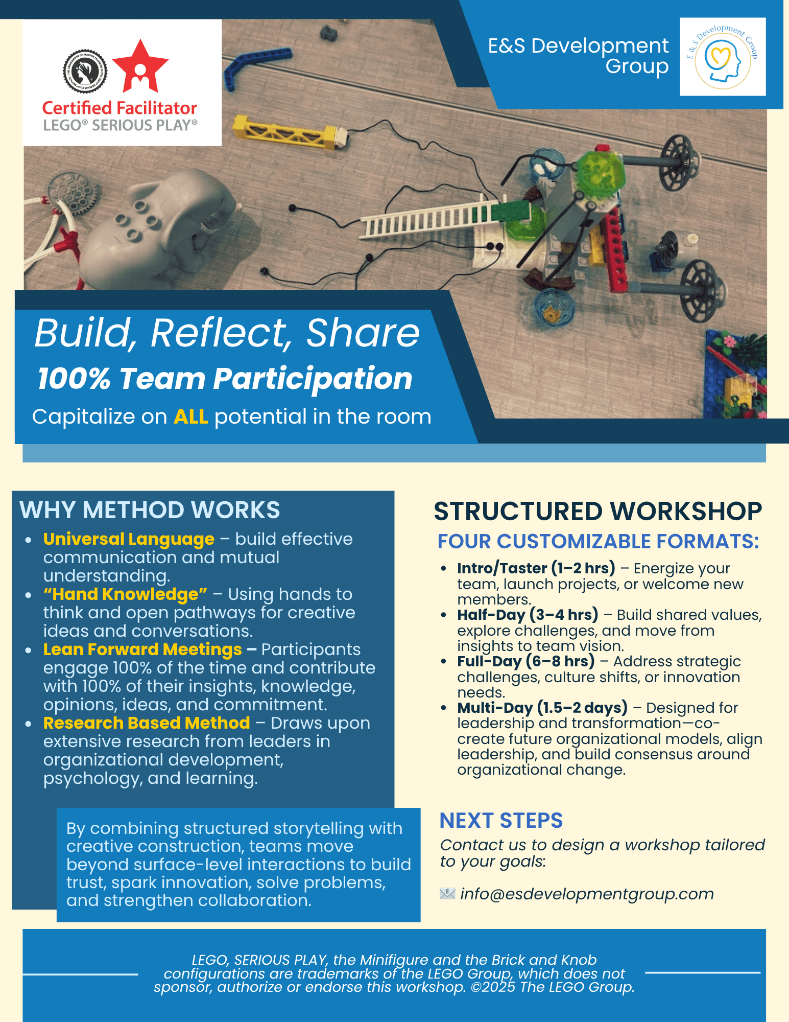 LEGO®, SERIOUS PLAY®, the Minifigure and the Brick and Knob configurations are trademarks of the LEGO Group, which does not sponsor, authorize or endorse this workshop. ©2025 The LEGO Group.